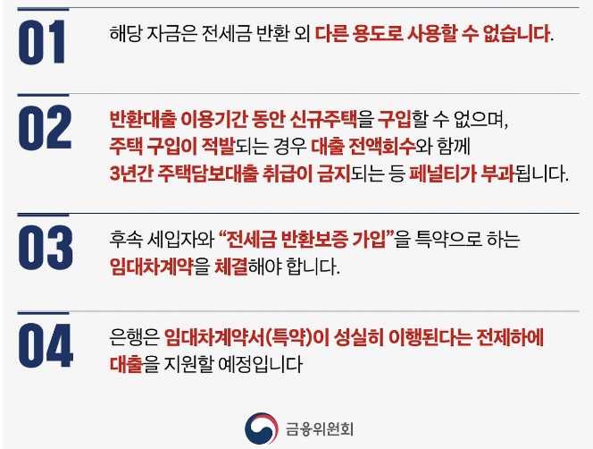집주인의 대출된 돈은 세입자에게 직접 지급하여 다른 용도로 사용할 수 없습니다. 관련 주의사항은 아래 내용을 참조하고 주시기 바랍니다.
