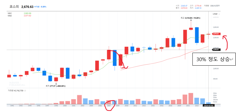 더 거슬러 올라가 1997년 IMF에도 주식 매수의 기회였습니다.