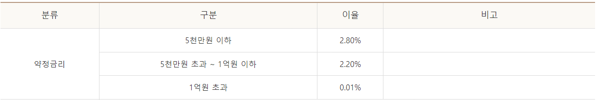 - 이자지급: 월지급으로 매월 둘째 주 토요일에 지급